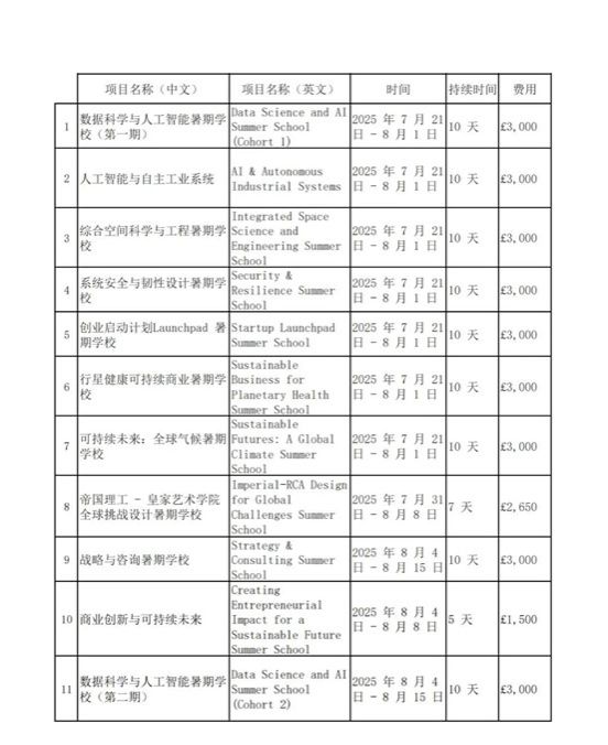 学校官网详情://www.imperial.ac.uk/continuing-professional- development/short-courses/summer-schools/summerschool/