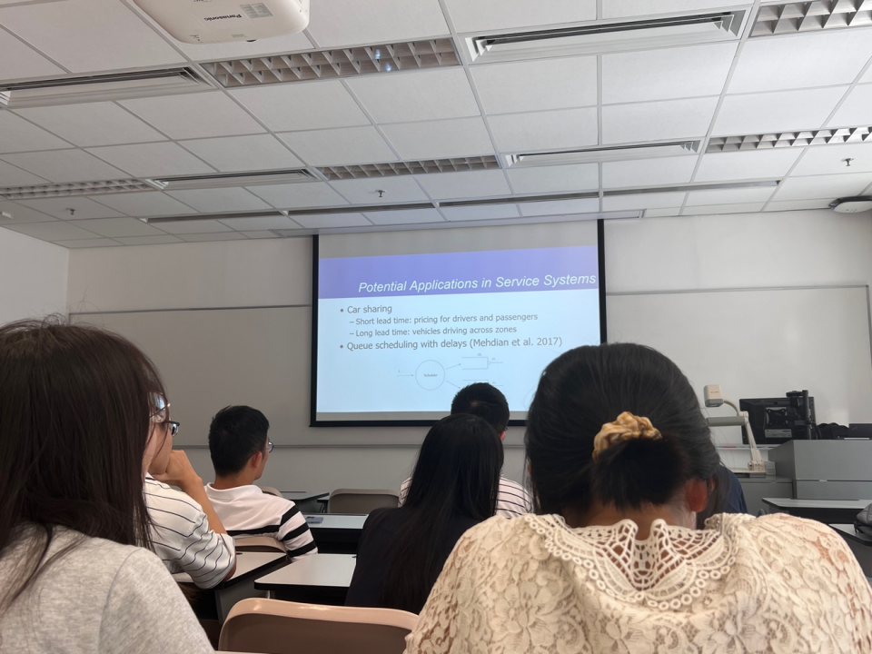 在CUHK的交流经历中,我印象最深刻的事情之一是参加了一些海内外知名教授开展的研讨会,如Gatech的Prof. Xin chen。尽管是教授来香港临时安排的行程,学校没来的及准备专门的报告厅,只有临时找了个小教室,但小教室仍然坐满了人,来听讲座的有系里的教授、PhD们,也有我这种刚入门的undergraduates。而最让我印象深刻的是大家聆听时的氛围,无论是手握多篇顶级期刊论文的大佬教授,还是像我这样的学术新手,都是讲座中平等的聆听者。我们之间的讨论没有壁垒也没有隔阂,哪怕是一些比较浅显易懂的问题,讲座教授也会耐心地一一解答。