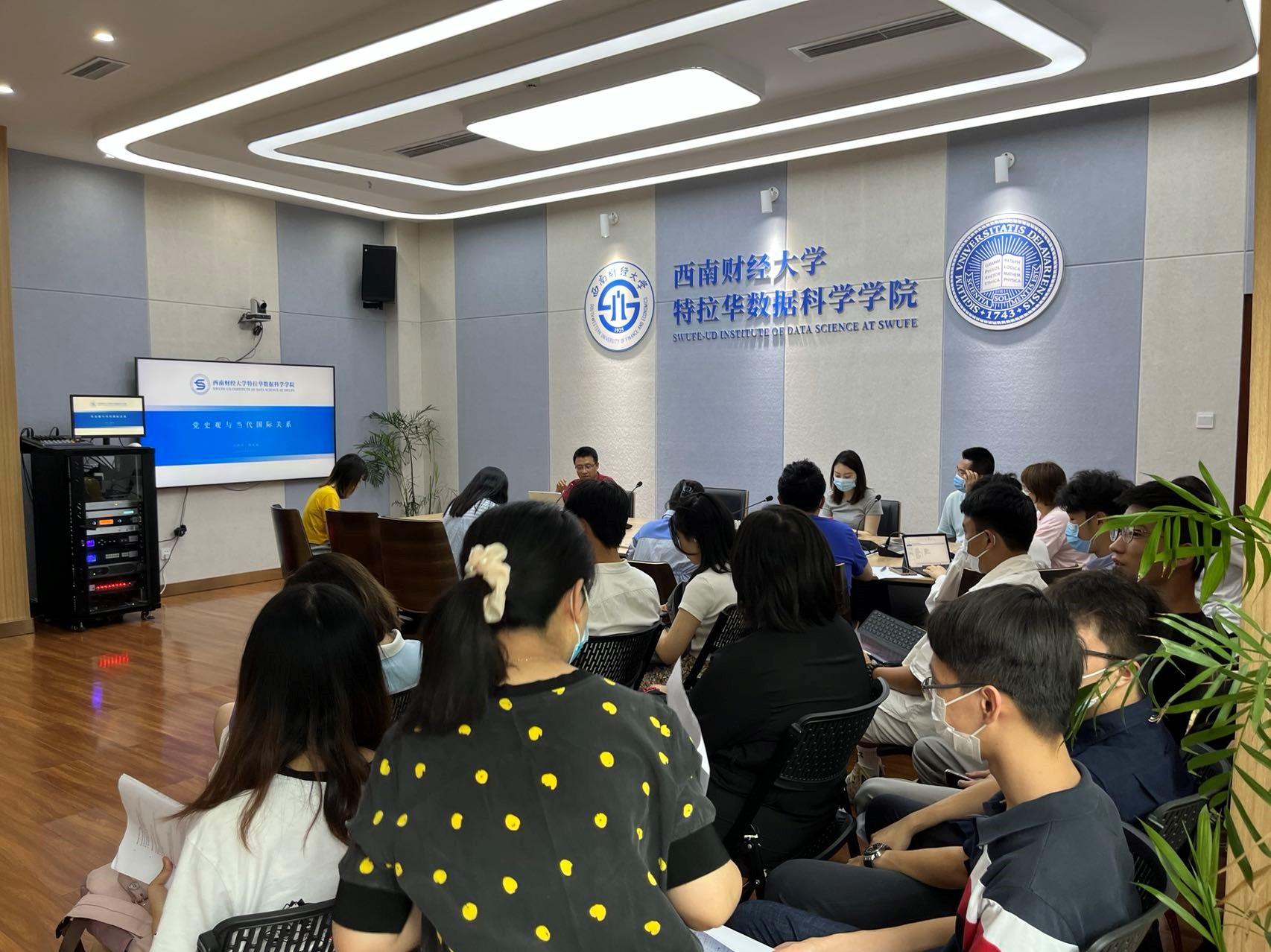 院长杨石磊在格致楼101会议室给学院教师、2020级与2021级本科学生干部讲授了主题为“党史观与当代国际关系”的思想政治理论课。